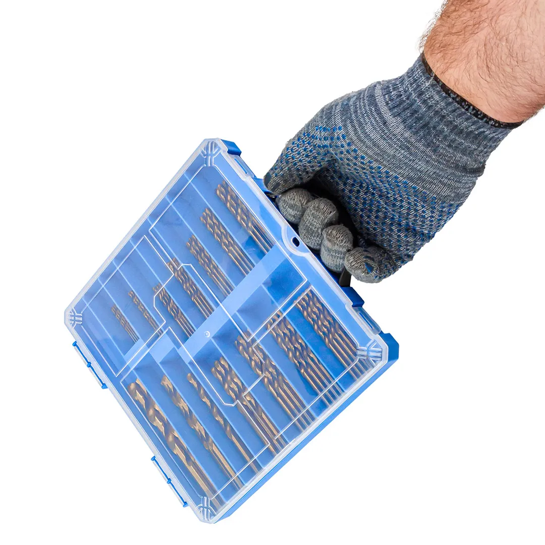 Набор сверл по металлу HSS предназначен для сверления отверстий в металлических изделиях. В наборе 100 предметов. Сверло изготовлено из высококачественной быстрорежущей стали (HSS) с кобальтовым покрытием, которая обеспечивает высокую стойкость, выдающуюся скорость сверления, простым и точным центрированием и длительным сроком службы. Тип сверла- прокатная у-образная спираль, которая обеспечивает эффективное удаление стружки и улучшенную стабильность при сверлении. Цилиндрический хвостовик сверла предназначен для использования с различными типами электроинструментов: дрель, перфоратор, шуруповерт, сверлильный станок. Комплектация: 10шт Сверла HSS 1мм 10шт Сверла HSS 2мм 10шт Сверла HSS 2,5мм 10шт Сверла HSS 3мм 10шт Сверла HSS 3,2мм 10шт Сверла HSS 3,5мм 10шт Сверла HSS 4мм 5шт Сверла HSS 4,5мм 5шт Сверла HSS 5мм 5шт Сверла HSS 5,5мм 5шт Сверла HSS 6мм 5шт Сверла HSS 6,5мм 2шт Сверла HSS 8мм 2шт Сверла HSS 10мм 1шт пластиковый кейс.Преимущества работы с нами