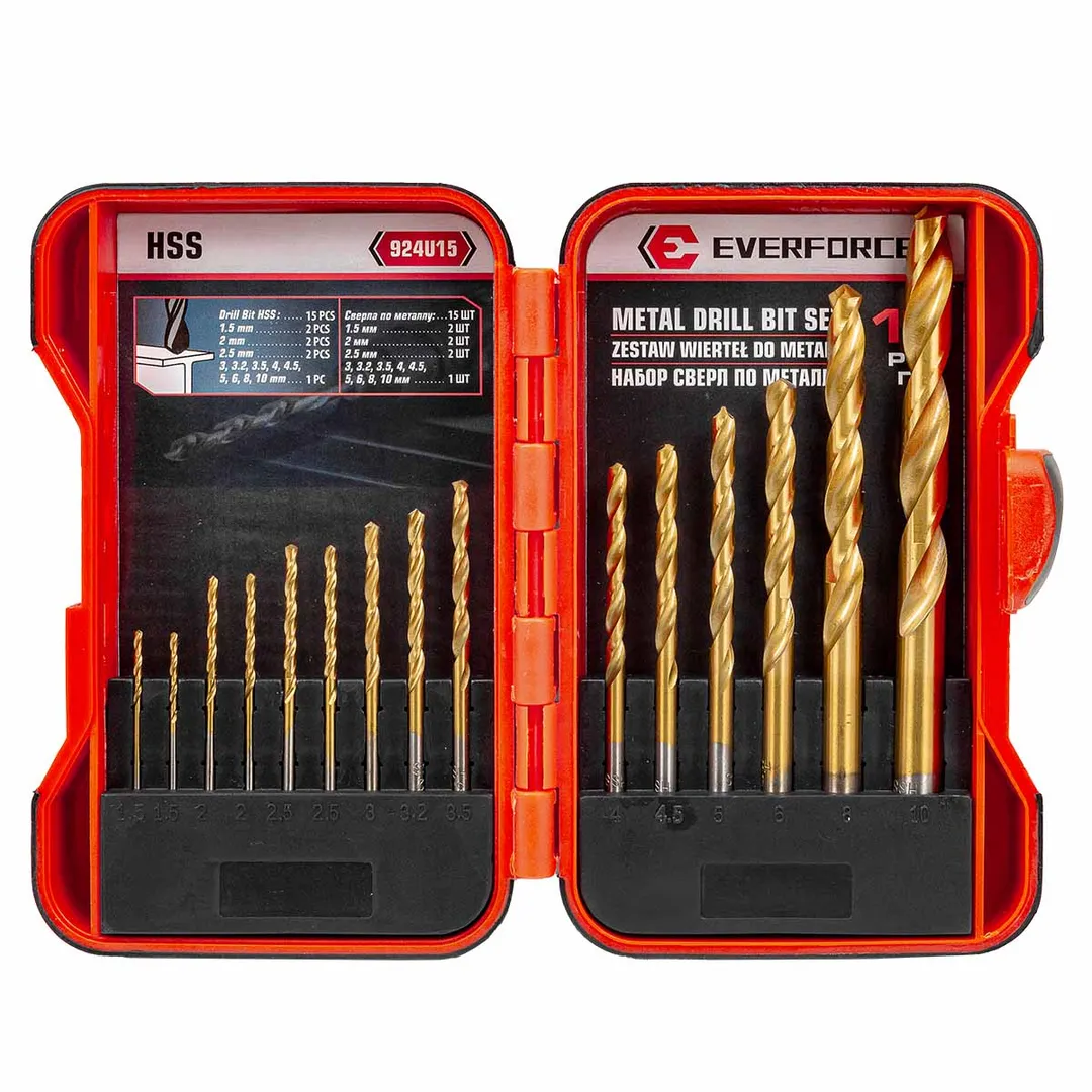Набор сверл по металлу 15 пр, 1.5-10 мм EVERFORCE EF-924U15
