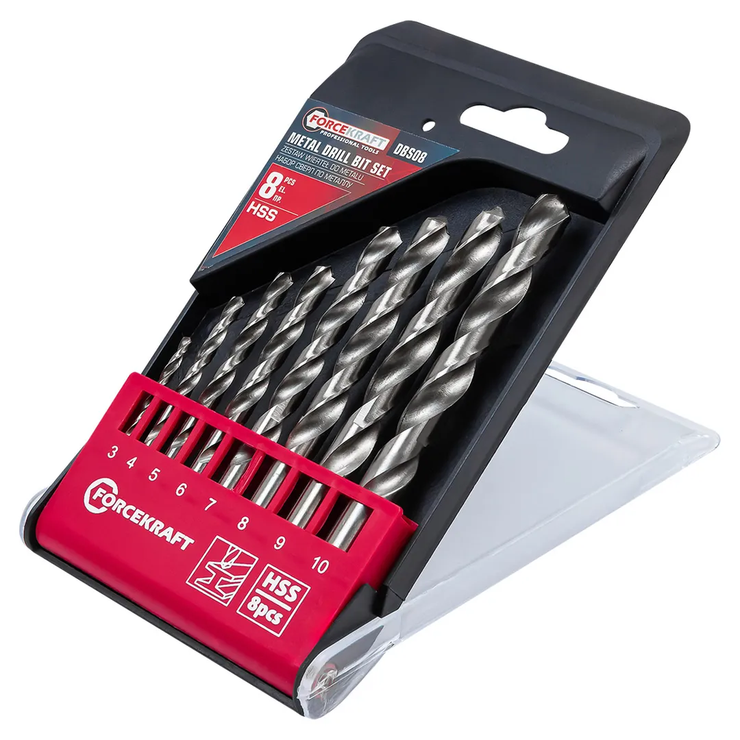 Набор сверл по металлу 3-10 мм 8 пр ForceKraft FK-DBS08