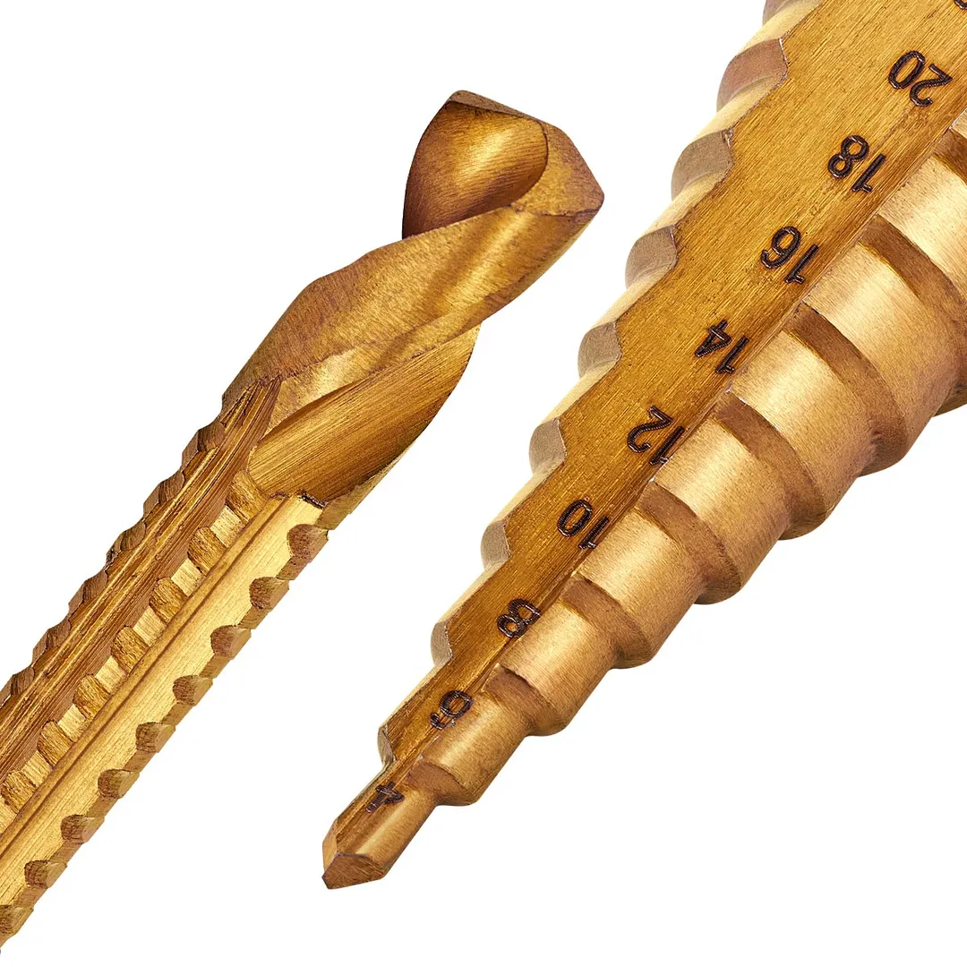 Набор сверл ступенчатых 4-12, 4-20, 4-32 мм, сверл-фрез 3, 6, 8 мм, по алюминию, меди, дереву, пластику 6 пр Partner PA-44706