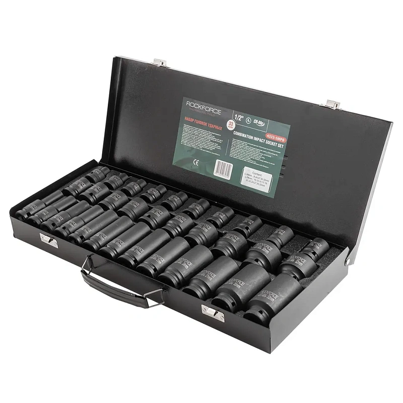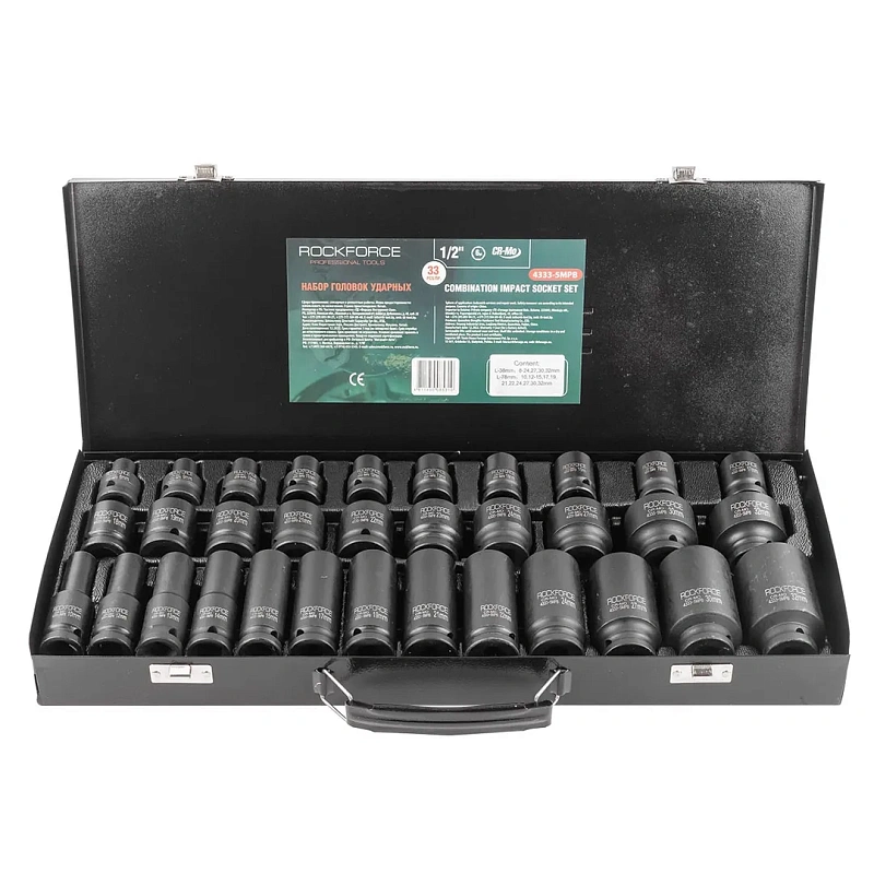 Набор ударных глубоких и коротких головок 8-32 мм 1/2'' 6-гр 33 пр, L 38, 78 мм RockForce RF-4333-5MPB