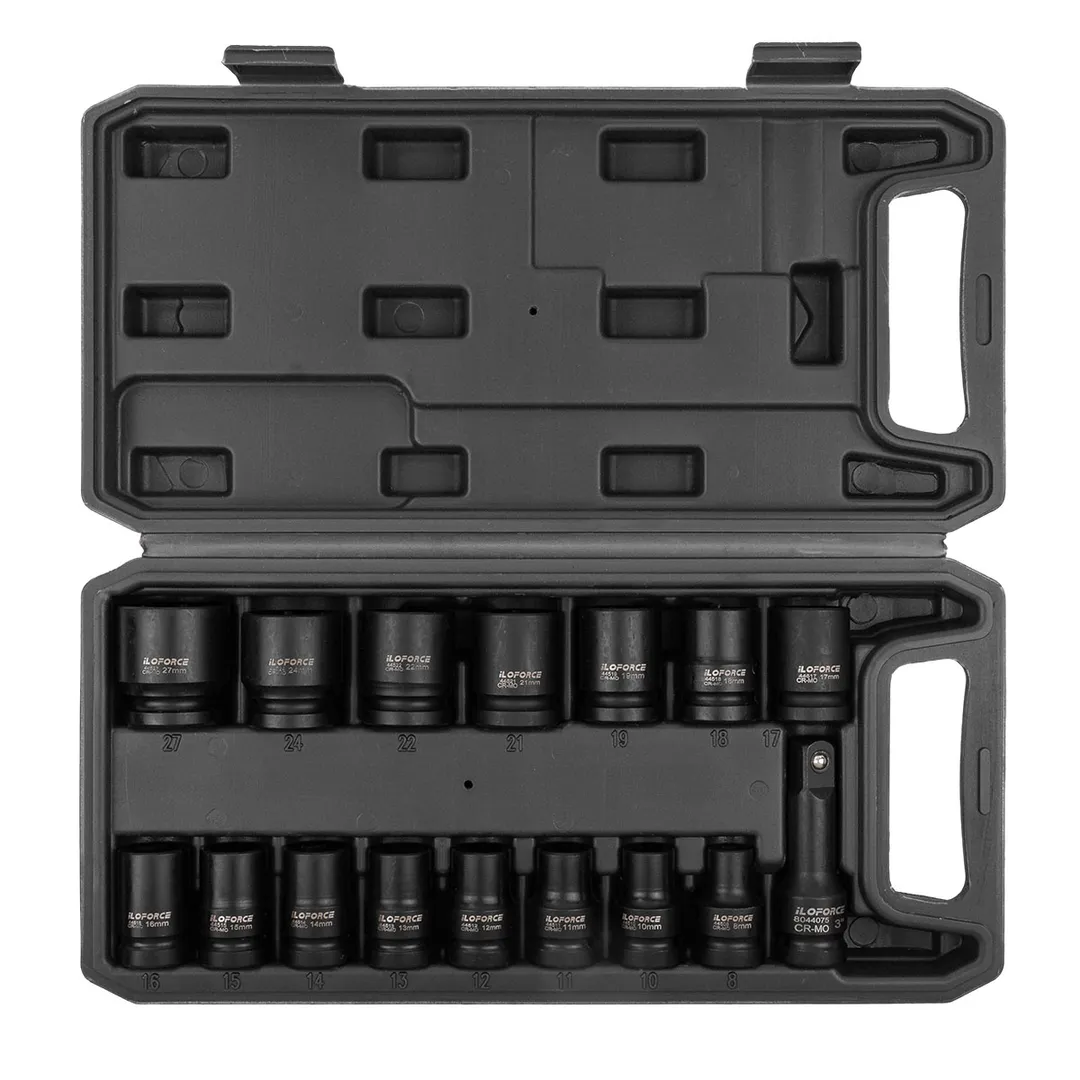 Набор ударных головок 8-27 мм 1/2'' 6 гр 16 пр, удлинитель 75 мм ILOforce IF-4179-5MPB
