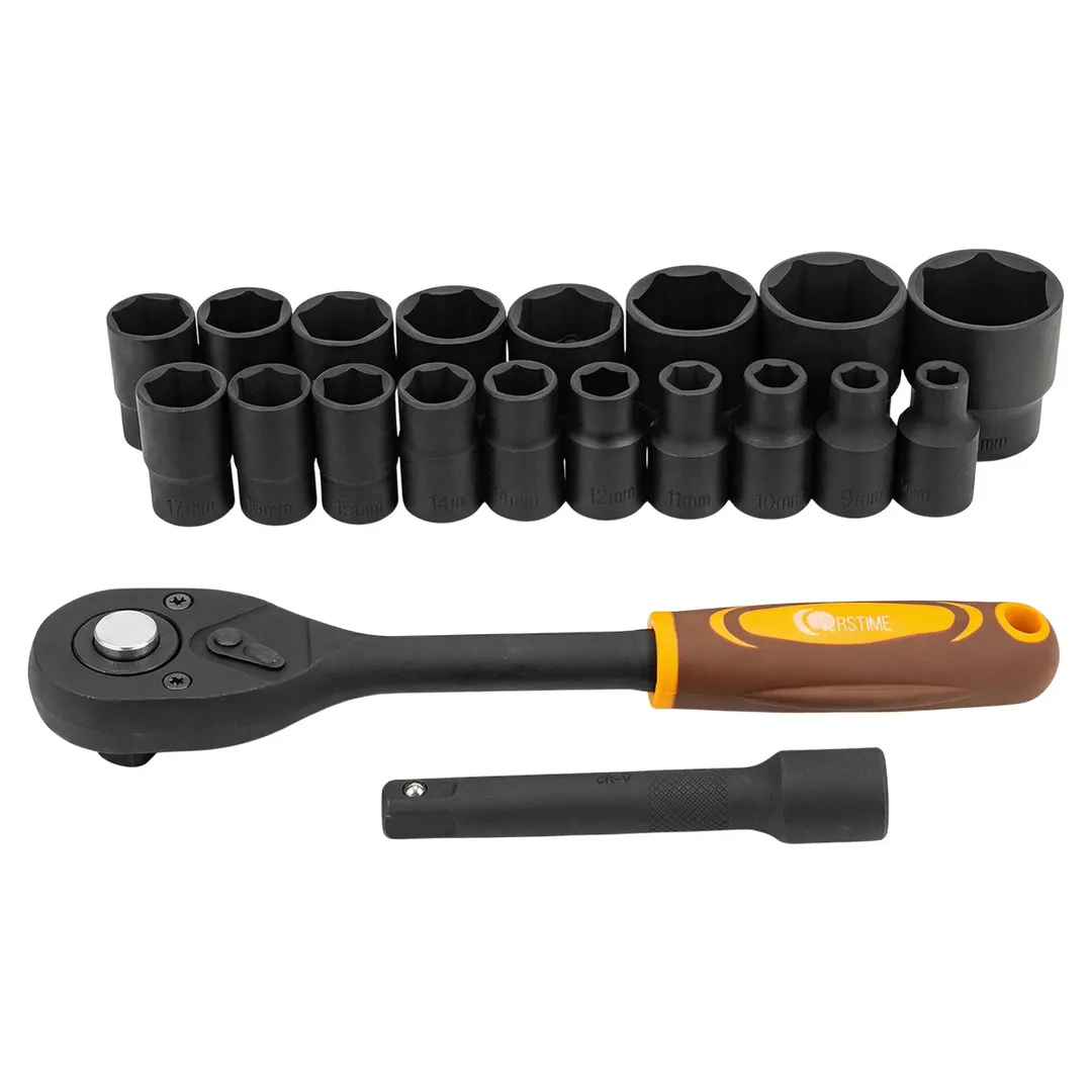 Набор ударных головок 8-32 мм 1/2'', с трещоткой 20 пр FORSTIME FT-019-5K
