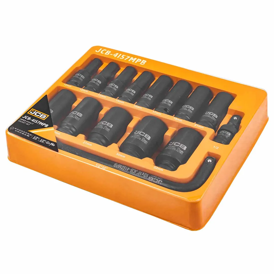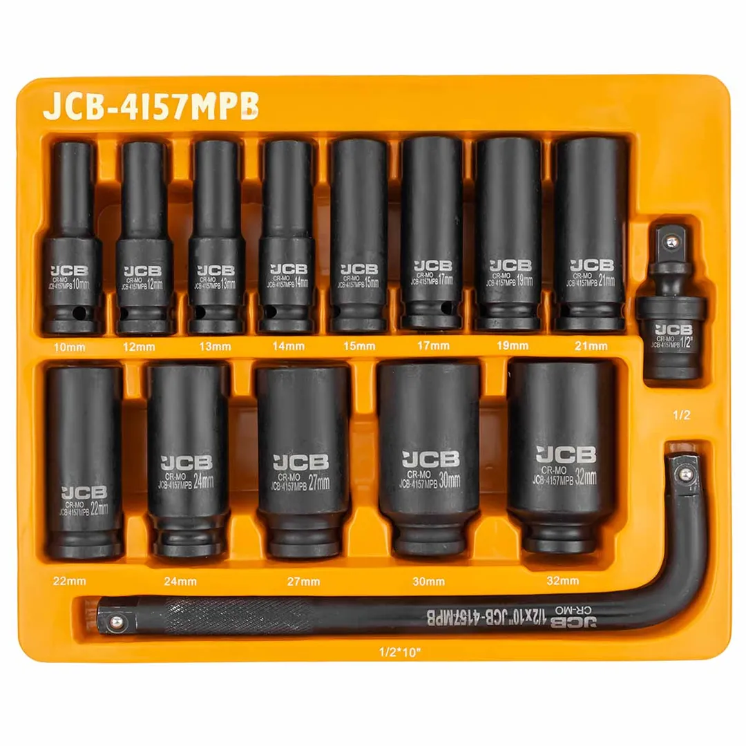 Набор ударных головок глубоких 15 пр., 1/2'', 6-гр. 10-32 мм в ложементе JCB JCB-4157MPB, описание и характеристики: