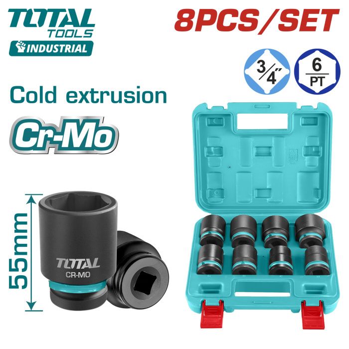 Набор ужарных головок 26-38 мм 6-гр 3/4" 8 пр TOTAL THKISD34081