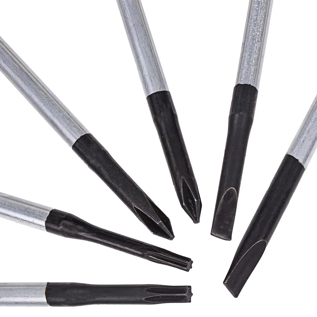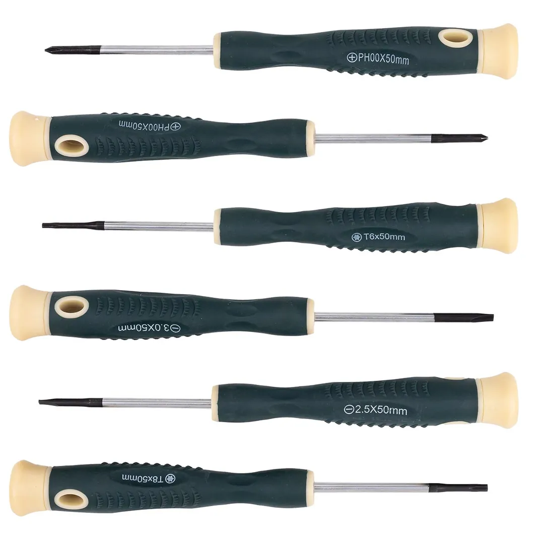 Набор ювелирных отверток для точечных работ 6 предметов в органайзере - это незаменимый инструмент для любого профессионального ювелира или электронщика. Он содержит шесть различных размеров отверток, которые позволяют работать с самыми мелкими деталями, такими как часовые механизмы, микрочипы. В набор входят отвертки SL2.0, SL2.4, SL3.0, PH00, PH0, PH1. Длина хвостовика отверток 50 мм. Преимущества использования этого набора отверток включают в себя высокую точность и надежность, что уменьшает риск повреждения деталей во время работы. Кроме того, ювелирные отвертки имеют удобный и эргономичный дизайн, что позволяет работать дольше без усталости в руках. Этот набор отверток также очень портативный, что делает его идеальным для использования как в профессиональном окружении, так и дома. Компактный размер позволяет легко хранить его в ящике или на столе, а также брать с собой в поездки или на работу.Преимущества работы с нами