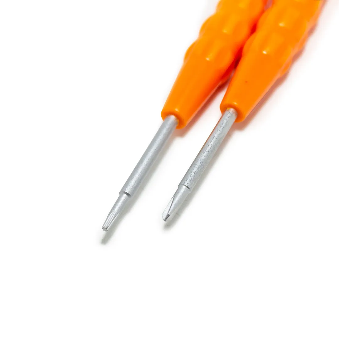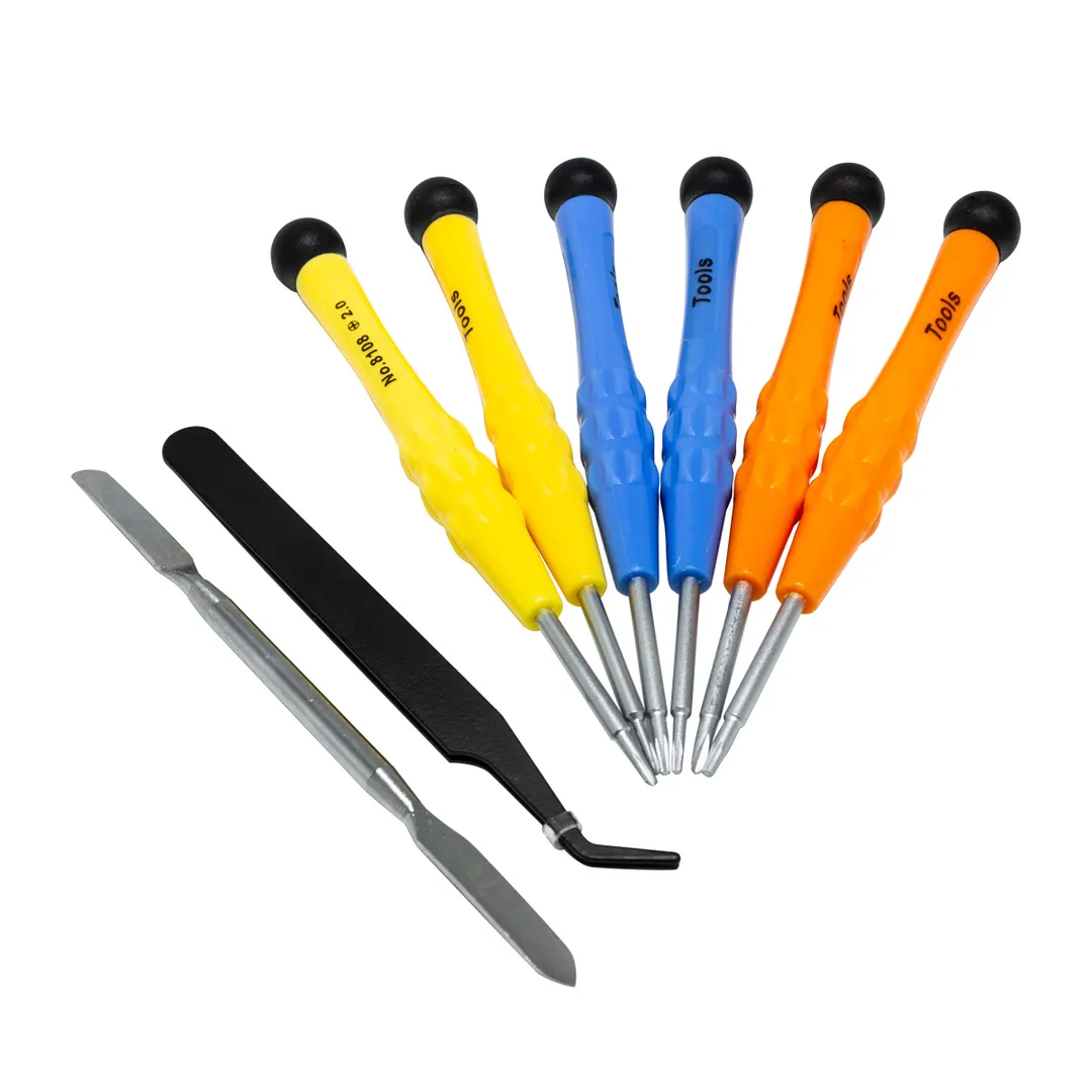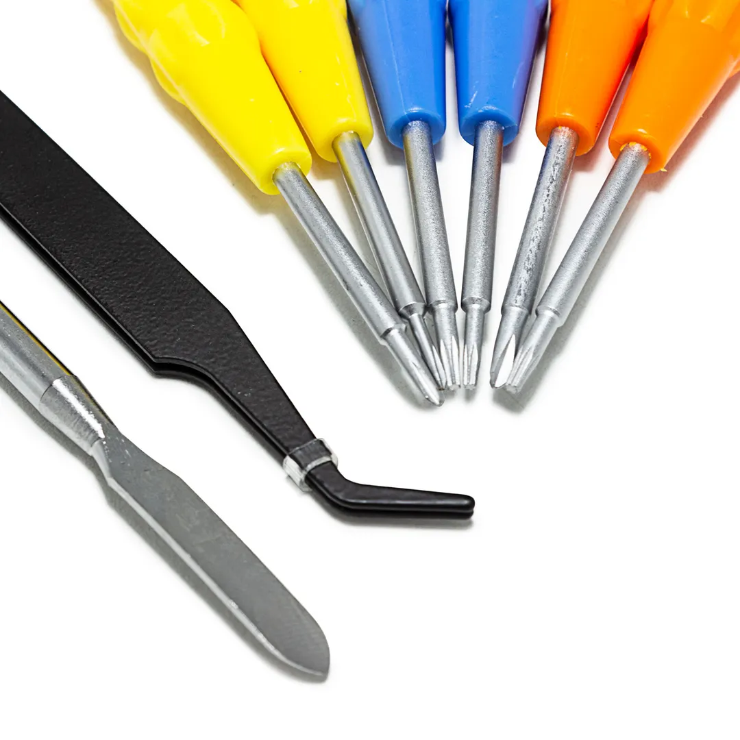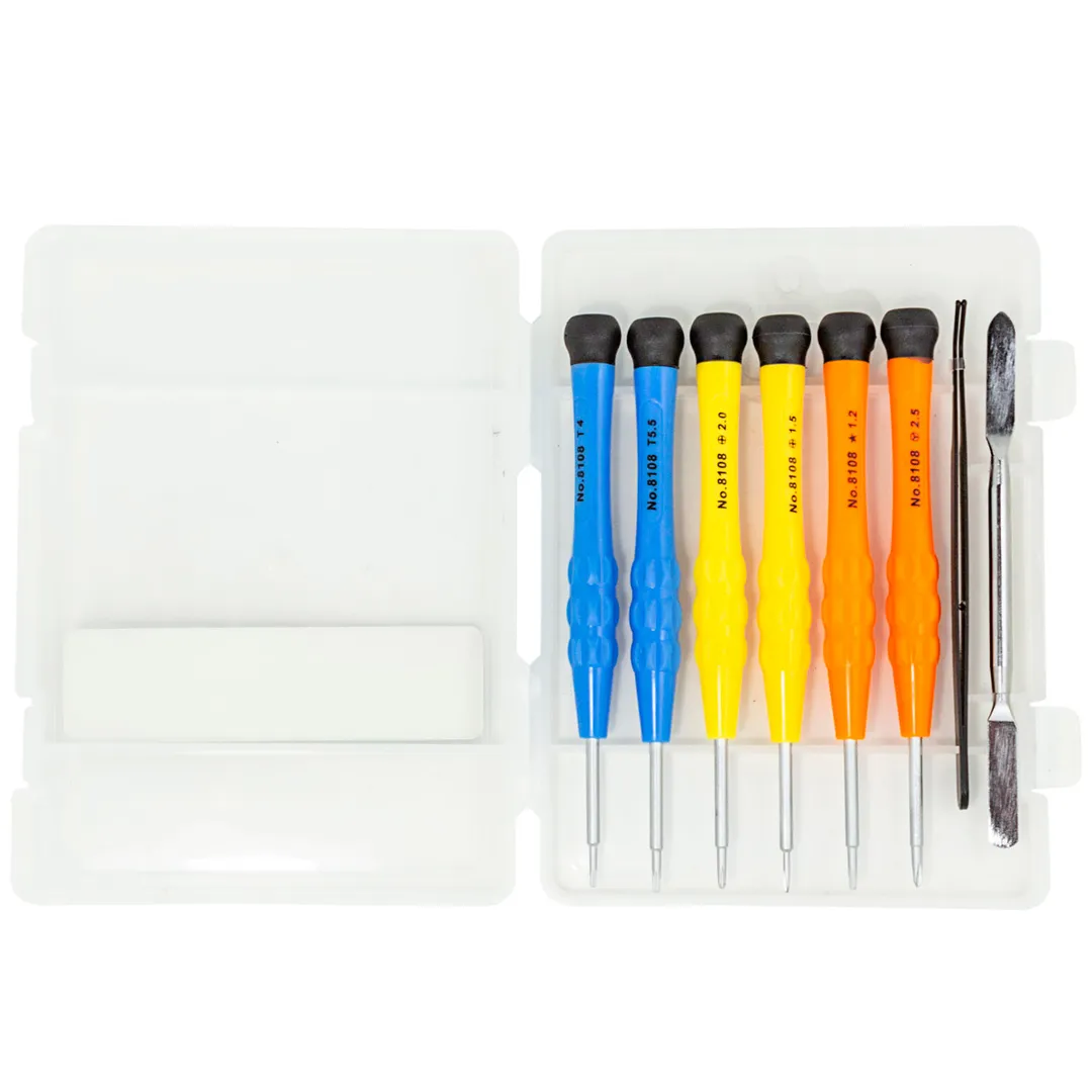 Универсальный набор отверток для точных ремонтных работ 8 предметов в пластиковом футляре – это незаменимый, многофункциональный инструмент для всех, кто заботится о качественном ремонте и сборке мелких предметов. Этот набор включает в себя 8 предметов: отвертки T4, T5.5, PH1.5, PH2, TS1.2, Y2.0, металлические пинцет длиной 110 мм и лопатка 116 мм. Все отвертки имеют эргономичные ручки, которые позволяют работать с ювелирными изделиями без усталости.Отвертки изготовлены из высококачественной стали и имеют острые наконечники, что обеспечивает высокую точность при работе с ювелирными украшениями и гарантирует их долговечность и надежность в использовании. Набор поставляется в пластиковом футляре для удобства хранения и транспортировке.Преимущества работы с нами