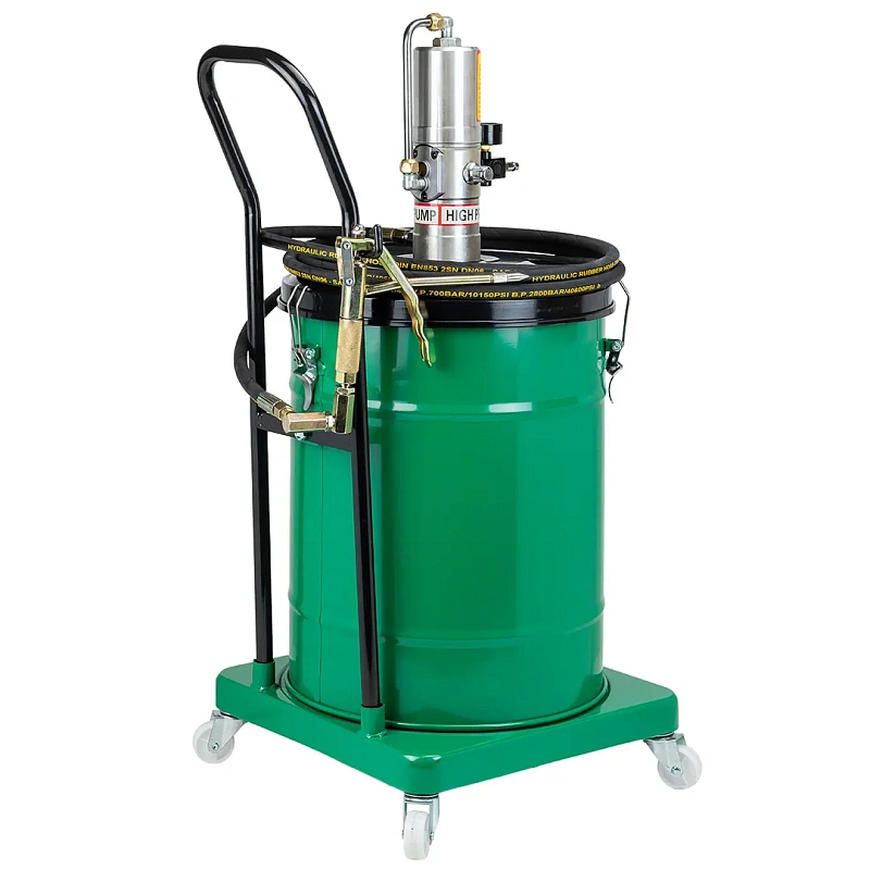 Нагнетатель смазки пневматический перекатной с емкостью 40л. Рабочее давление - 410bar, длина шланга - 4м. Нагнетатели смазки предназначаются для перекачивания консистентных смазок из ёмкостей. Этот вид оборудования широко применяется при ремонте и обслуживании легковых и грузовых автомобилей, спецтехники. Передвижные системы раздачи смазки незаменимы при обслуживании шестерённых передач станков, различных механизмов, узлов и агрегатов. Устройства просты и удобны в эксплуатации и могут применяться как на крупных предприятиях, так и в условиях небольших автосервисов, мастерских и гаражей. Конструкция насосной установки состоит из пневматического насоса, прижимного диска, крышки, крепления ёмкости. Смазка подаётся по шлангу высокого давления и поступает, непосредственно, к трущимся частям механизмов. При этом не требуется прилагать дополнительных усилий.Преимущества работы с нами