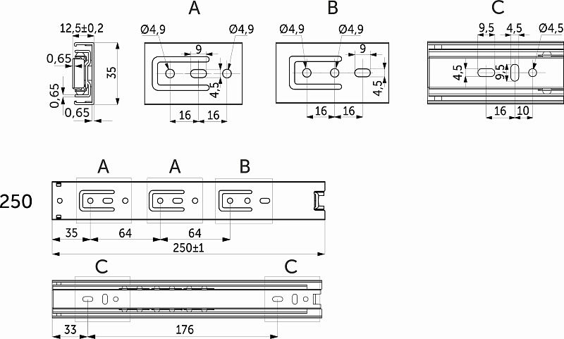 Направляющая шариковая L-250 h=35 A GRIDLI 106036, описание: