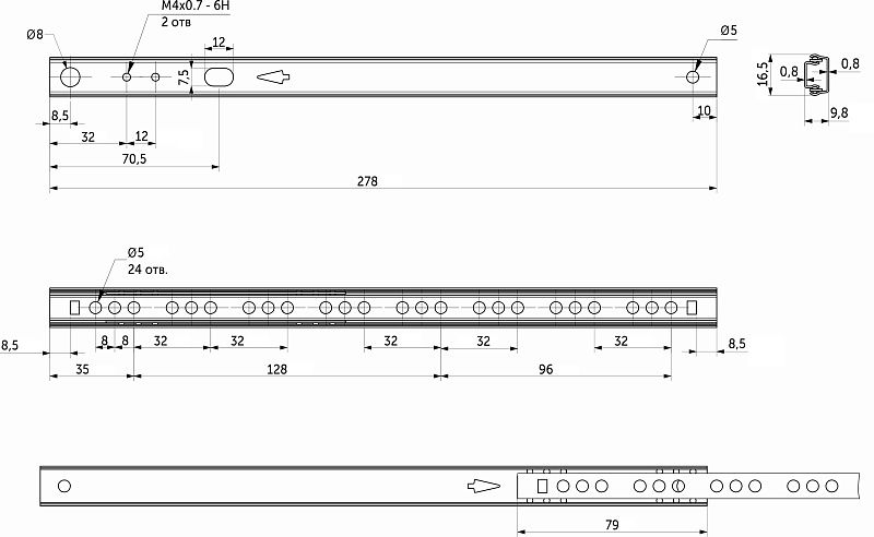 Направляющая шариковая L-278 h=17 A GRIDLI 123091, описание: