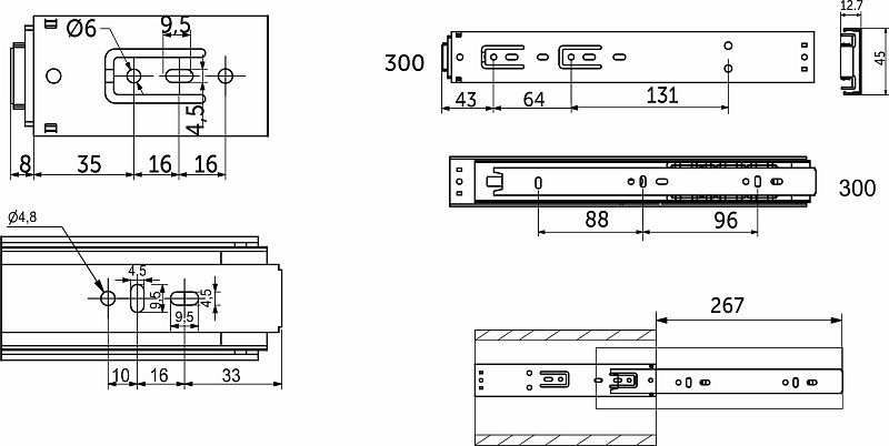 Направляюшая шариковая с системой открытия от нажатия (Push-to-open) PRIME by AKS – идеальное сочетание функциональности и надежности для мебели среднего+ сегмента. Направляющие изготовлены из холоднокатанной стали, что обеспечивает их долговечность. Они выносливы и надежны. Имея толщину металла в 1,2*1,2*1,2мм способны выдерживать нагрузки до 30 кг (с учетом веса самого мебельного ящика), сохраняя при этом безупречную работу. Рассчитаны на 80 000 циклов открывания/закрывания. Данный тип направляющих не предполагает установку ручек. Направляющие плавно выдвигают ящик от легкого нажатия на любую точку фасада. Представлены в широком диапазоне длин: от 250 до 600 мм (с шагом 50 мм). Направляющая длиной L-300 мм имеет потерю выдвижения в 33 мм. Корректная работа системы открытия от нажатия предполагает наличие минимального зазора в 5 мм между корпусом (боковой стенкой) и фасадом при закрытом ящике. Данные направляющие широко применимы как дома, так и в офисах, коммерческих помещениях. Подойдёт для установки в шкафах и гардеробных, в консолях и тумбах, в письменных столах и комодах. В комплект направляющих входит:направляющая - 2 шт (левая, правая). Важное дополнение:саморезы для монтажа в комплект не входят, и приобретаются отдельно. При установке рекомендуется использование саморезов 81320.Технические характеристики: