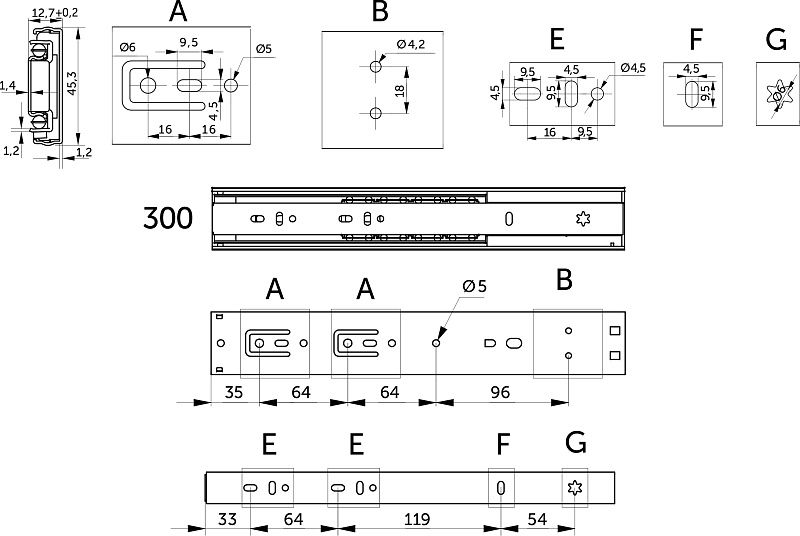 Направляющая шариковая L-300 h=45 SOFT CLOSE A PRIME by AKS 114793, описание: