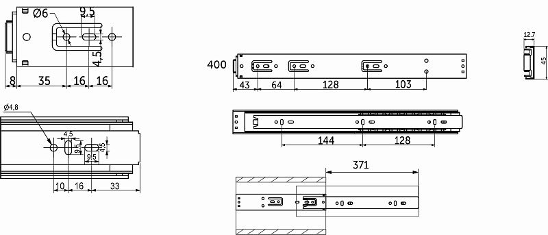 Направляющая шариковая L-400 h=45 PUSH TO OPEN A PRIME by AKS 114790, описание: