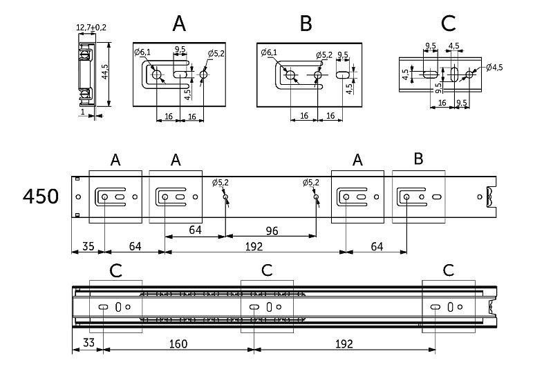 Направляющая шариковая L-450 h=45 A PRIME by AKS 114825, описание: