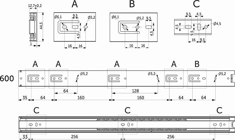 Классическая направляющая с шарикоподшипниковым механизмом и телескопической структурой, обеспечивает полное выдвижение. Высота 45 мм . Изготовлена из холоднокатаной стали. Длина -250 мм. Резиновый фиксатор от самопроизвольного открытия. Нагрузка -35 кг.Технические характеристики: