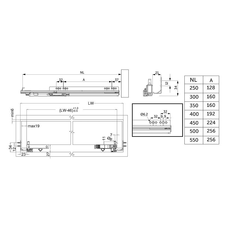 Направляющая скрытого монтажа L-250 с доводчиком ДСП до19mm с замками QType полное выдвижение AKS 119900, описание: