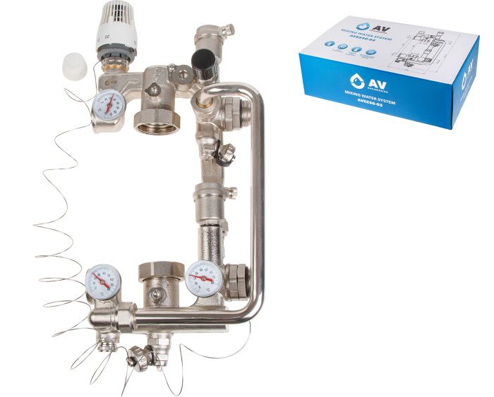 Насосно-смесительная группа (далее - "Изделие") AV Engineering применяется для технического совмещения контура радиаторного отопления и водяного напольного отопления.