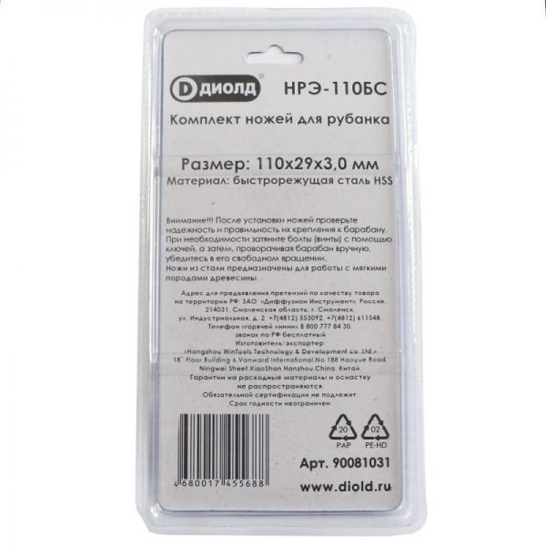 Ножи для рубанка НРЭ-110БС (большие) 110 мм (комплект) Диолд 90081031, описание: