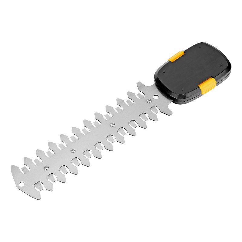 Аккумуляторные ножницы-кусторез Denzel GS-20 59432 работают от аккумулятора Li-Ion 20 В емкостью 2 А·ч. Предусмотрено 2 режима: ножниц для срезания травы и кустореза для обрезки кустарника, ухода за живой изгородью. Максимальная толщина срезаемых веток составляет 8 мм. Ширина среза в режиме ножниц составляет 100 мм, в режиме кустореза — 200 мм, что позволяет быстро и эффективно справиться с работой. Инструмент предназначен для бытового использования.