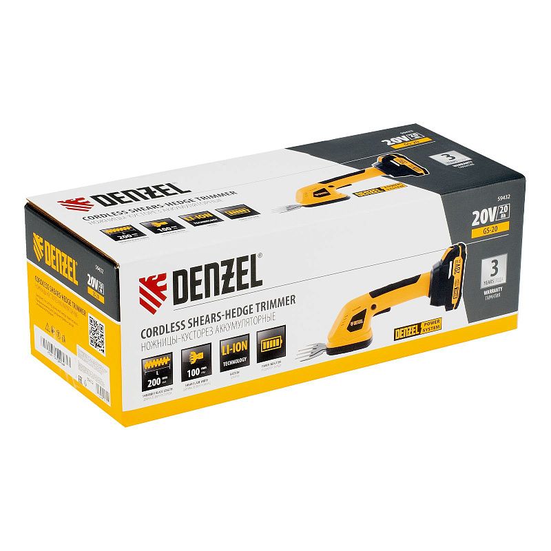 Ножницы-кусторез аккумуляторные GS-20, Li-Ion, 20 В Denzel 59432, описание: