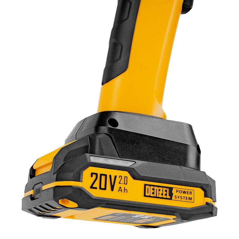 - Универсальность — аккумулятор совместим со всеми инструментами единой платформы Denzel Power System 20V.