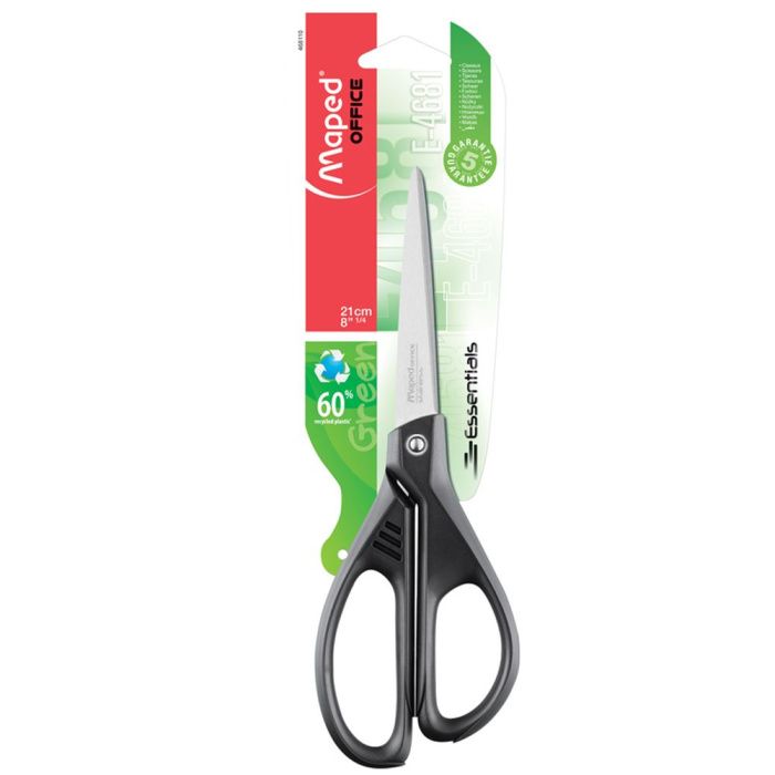 Ножницы "Essentials Green" 17 и 21 см. Неподвластный времени дизайн лезвия и заклепка из нержавеющей стали. Кольца на 70% изготовлены из переработанного пластика. Благодаря 2D эргономичным ручкам ножницы подходят как для левшей, так и для правшей.