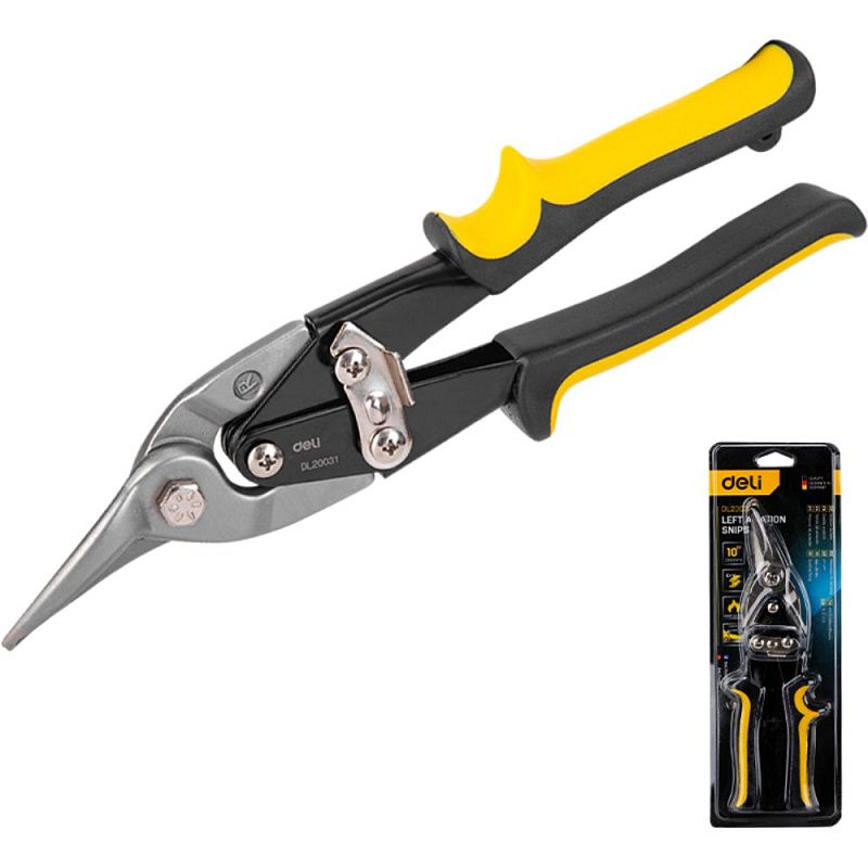 Ножницы по металлу Deli YS EDL20031, 250 мм, левый рез, черный, желтый