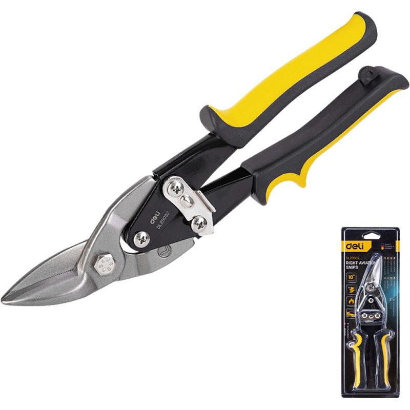 Ножницы по металлу Deli YS EDL20032, 250 мм, правый рез, черный, желтый