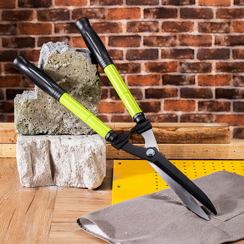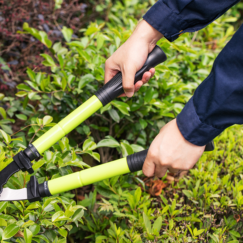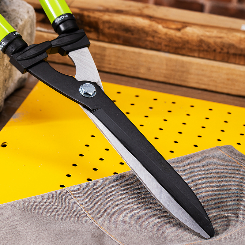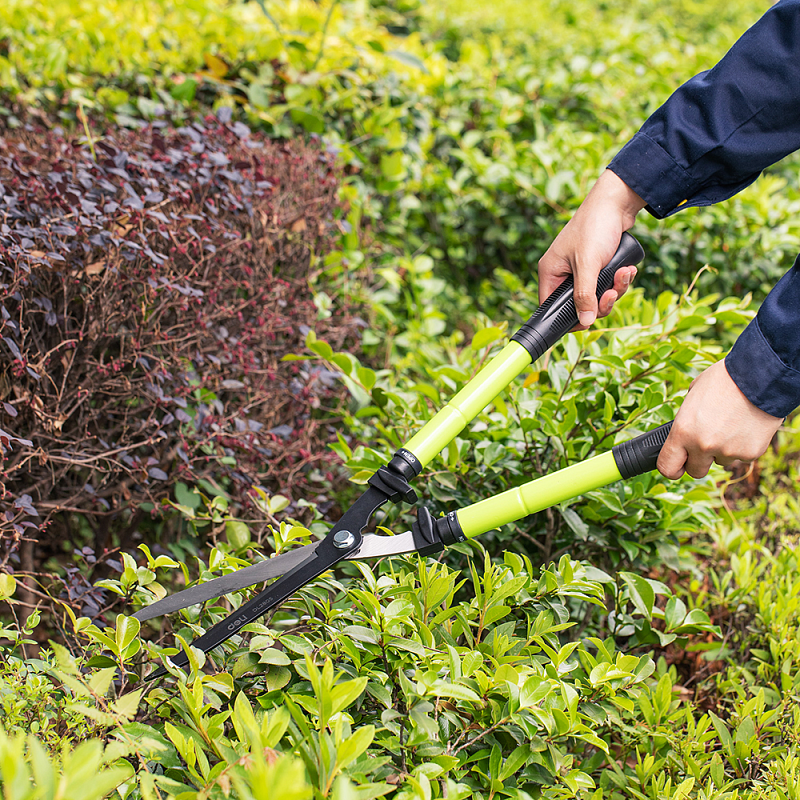 Благодаря раздвижной конструкции рукояти могут выдвигаться до 82 см в длину, что позволит с достать до самых дальних и высоких мест при работе с кустами или деревьями.