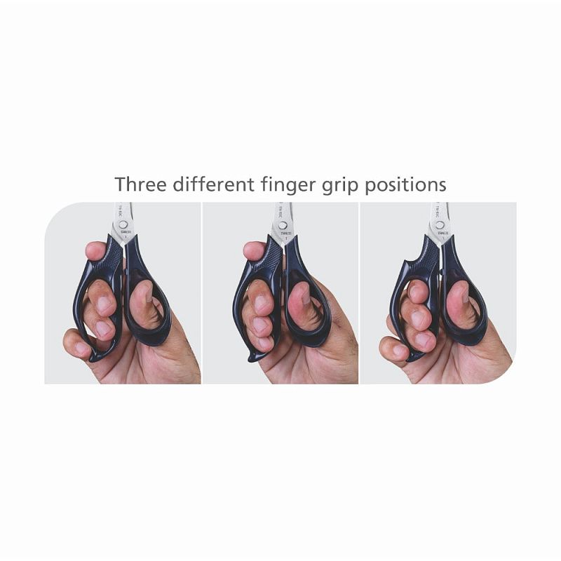 Ножницы идут вместе с колпачком для острия лезвий. Ударопрочные ручки из ABS-пластика с тремя различными варианты для хвата пальцев. Острые лезвия для лёгкого разрезания с антикоррозийным покрытием.