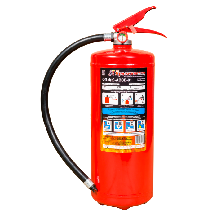 Профессиональный огнетушитель «Ярпожинвест» ОП-4 (з) ABCE рекомендован для защиты помещений категорий Г и Д, складов, производственных, административных и общественных помещений, кабин грузовых автомобилей, автобусов и специальной техники. Используется для тушения пожаров в помещениях и на открытом воздухе.