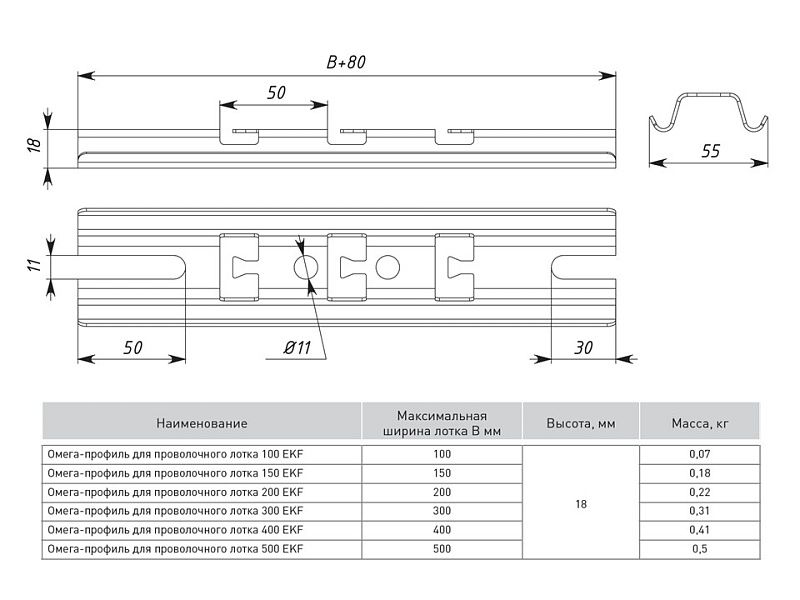 Омега-профиль для проволочного лотка 100 INOX EKF ompp100-INOX, технические характеристики: