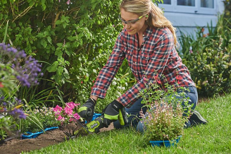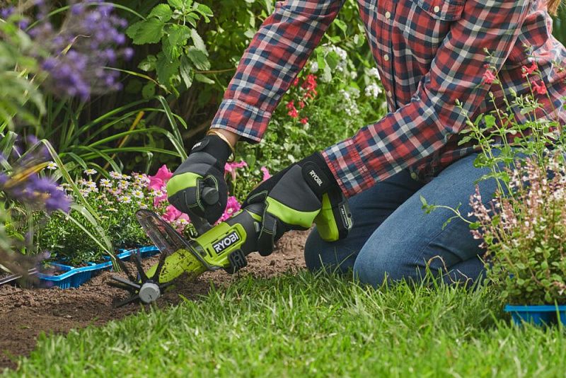 - Ручной культиватор RYOBI идеален для удаления сорняков и рыхления грядок или клумб.