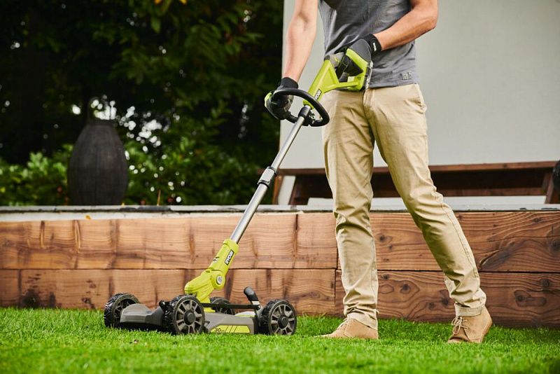 - Конструкция 3 в 1 позволяет при помощи одного компактного инструмента скашивать траву, выравнивать газон и обрабатывать кромку.