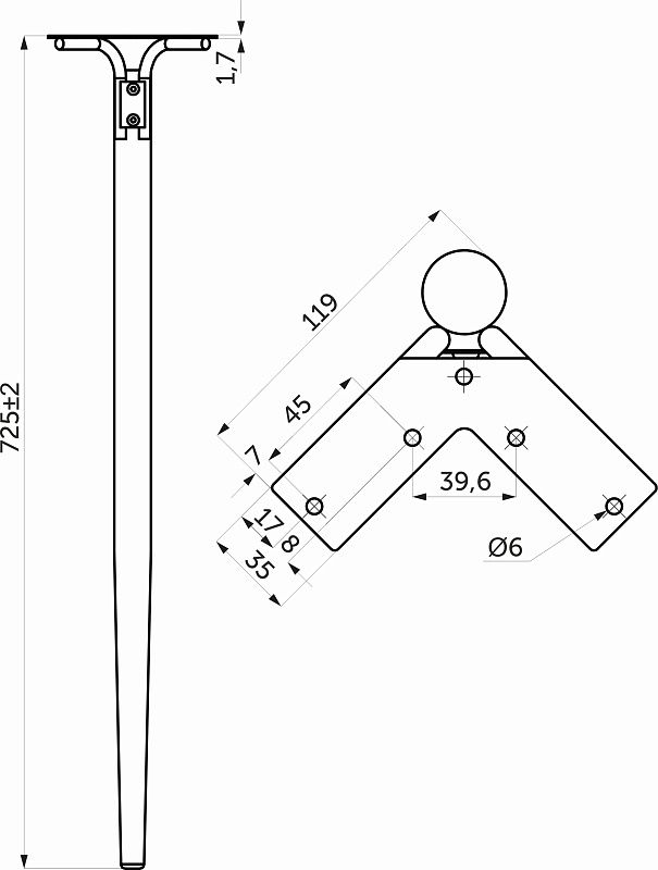 Опора меб. DIANA h725, белый матовый/хром, 1 упак. = 4 шт., AKS 112518, описание: