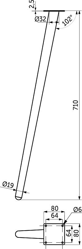 Опора мебельная конусная h710 наклонная, черный AKS 120601