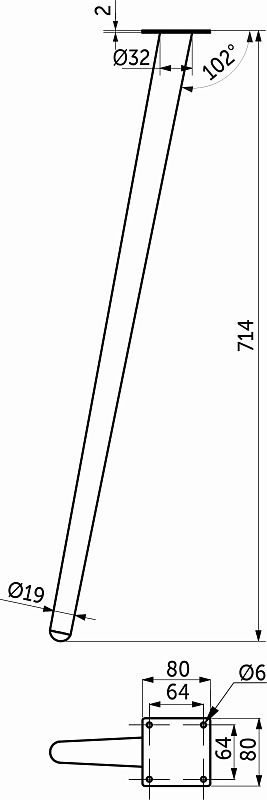 Опора металлическая наклонная для столов. Цвет - черный. Материал - сталь. Высота - 714 мм.Технические характеристики: