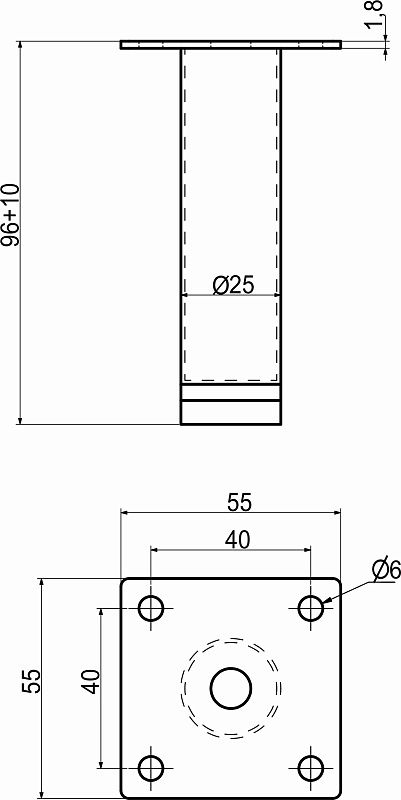 Опора меб. мет. D-100 h100 d25 с регул. черный, тип 2, AKS 86326, описание: