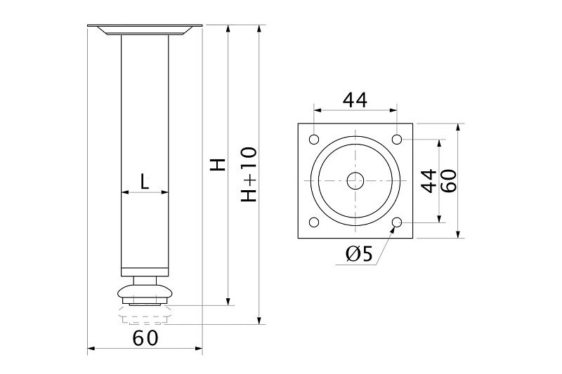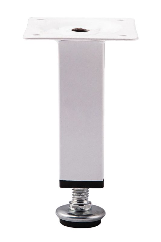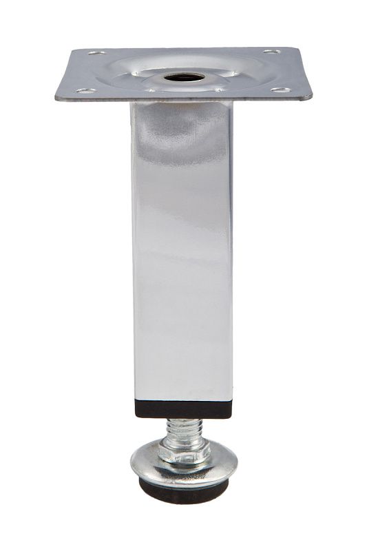 Опора мебельная металлическая. С регулировкой. Применяется для крепления к различного рода мебели в качестве опорного и декоративного элемента. Высота 100мм+10мм. Изготовлен из стали. Цвет - хром. Защитная bubble упаковка. Рекомендуемая максимальная нагрузка на одну опору - 50кг.Технические характеристики: