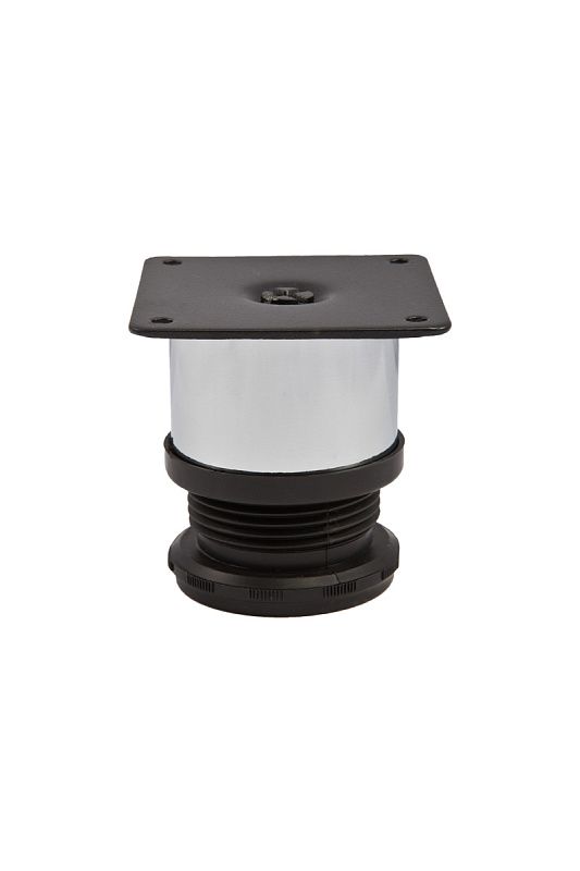Опора мебельная металлическая с регулировкой. Применяется для крепления к различного рода мебели в качестве опорного и декоративного элемента. Высота 100мм, диаметр - 50мм. Изготовлена из стали и пластика. Цвет - хром. Рекомендуемая максимальная нагрузка на одну опору - 50кг.Технические характеристики: