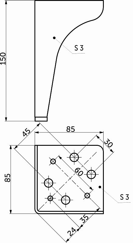 Опора меб. мет. STELLAR h150 угловая черный матовый AKS 113008, описание: