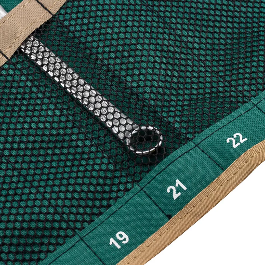 Органайзер для гаечных ключей – это хорошо продуманный аксессуар для хранения инструментов, который изготавливается для комфортного и долговечного пользования. Полотно (держатель) на 18 ключей гаечных. Чехол в развернутом виде имеет размеры 610 мм на 555 мм. Полотно-чехол для комбинированных, рожковых или накидных ключей имеет специальные отверстия с металлической оправой - они позволяют сэкономить место в гараже или мастерской, повесив набор гаечных ключей на стену или специальный стенд. Чехол-полотно для набора ключей гаечных имеет специальную фиксирующую ленту на застежке: набор комбинированных ключей можно скрутить и зафиксировать лентой.Преимущества работы с нами