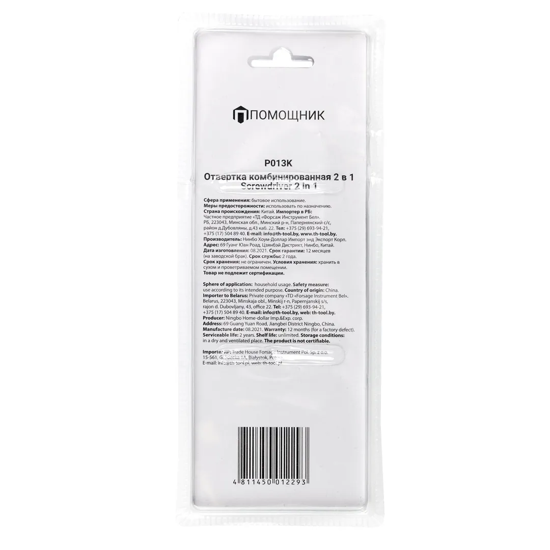 Отвертка переставная 2 в 1, РН2хSL5.5 мм Помощник P013K, описание и характеристики: