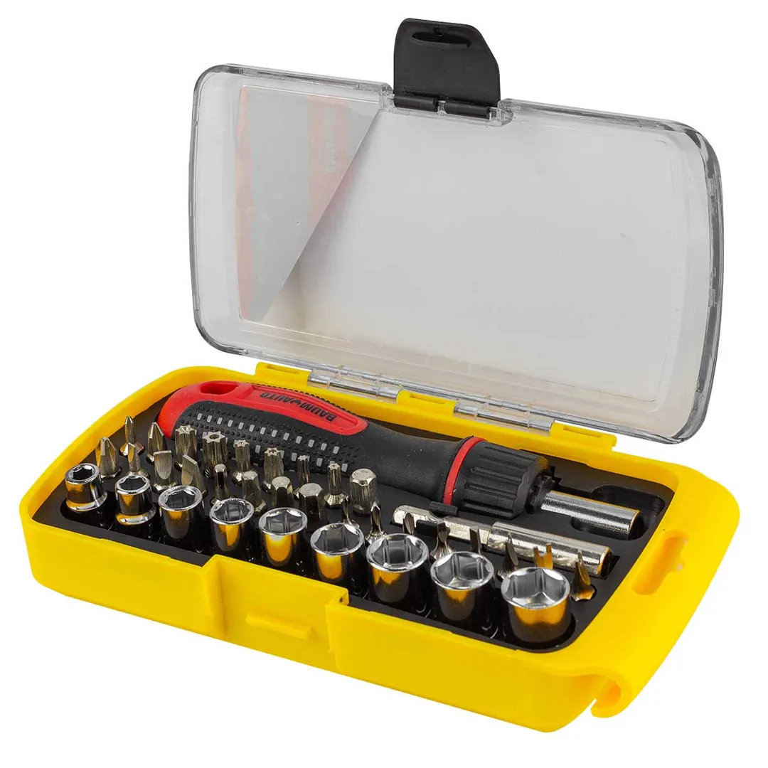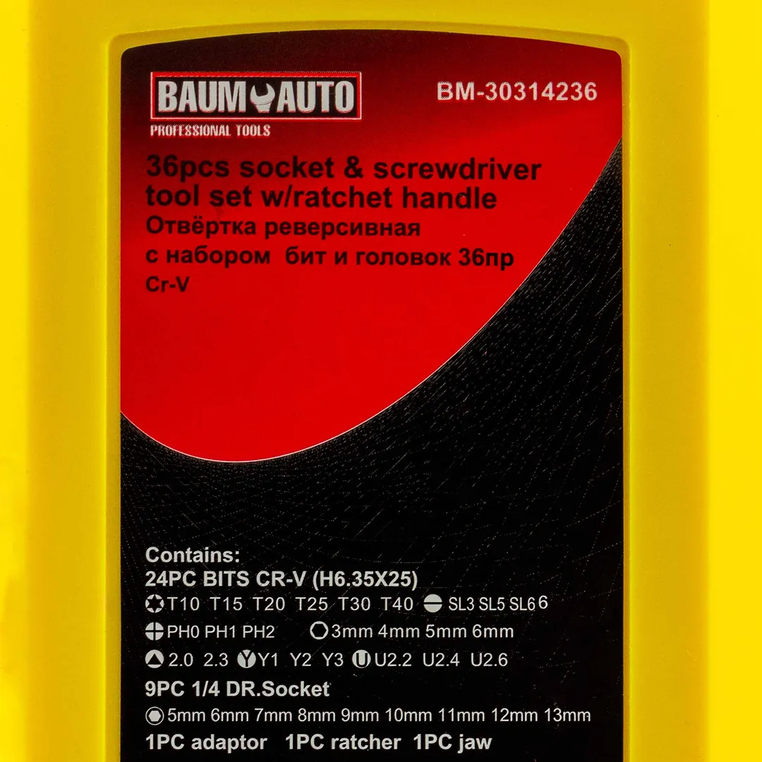 Отвертка реверсивная с битодержателем, комплектом бит и головок 36 пр. BaumAuto BM-30314236, описание и характеристики:
