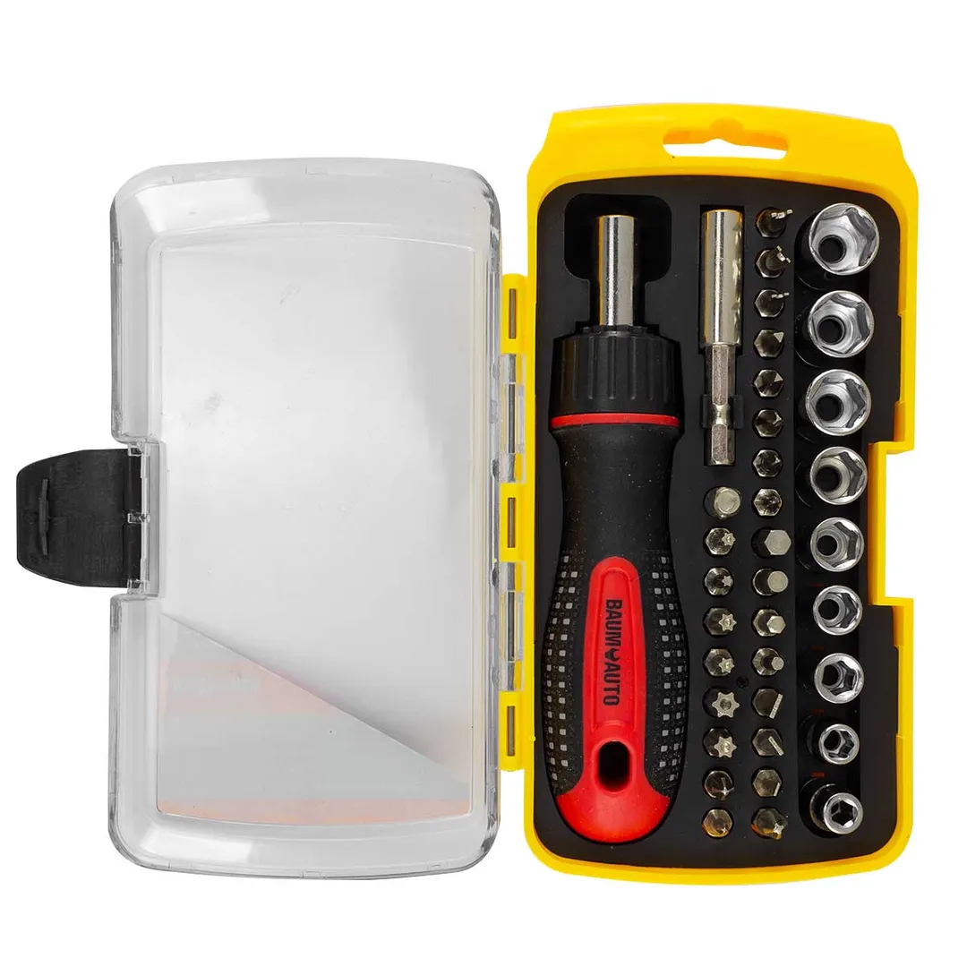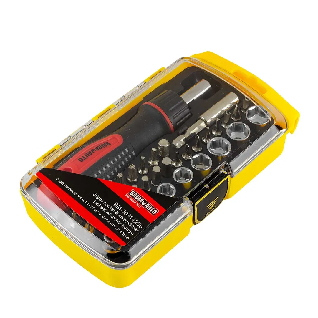 Отвертка реверсивная с битодержателем, комплектом бит и головок 36 пр. BaumAuto BM-30314236