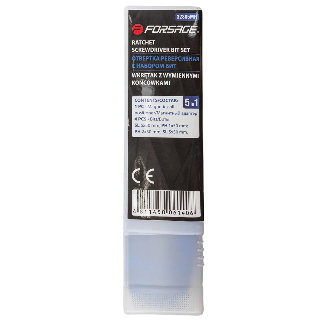 Отвертка реверсивная с набором бит Forsage F-32805MR, описание и характеристики: