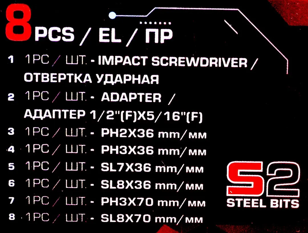 Отвертка ударная с набором бит и адаптером 8 пр Forsland Forsland-5064S