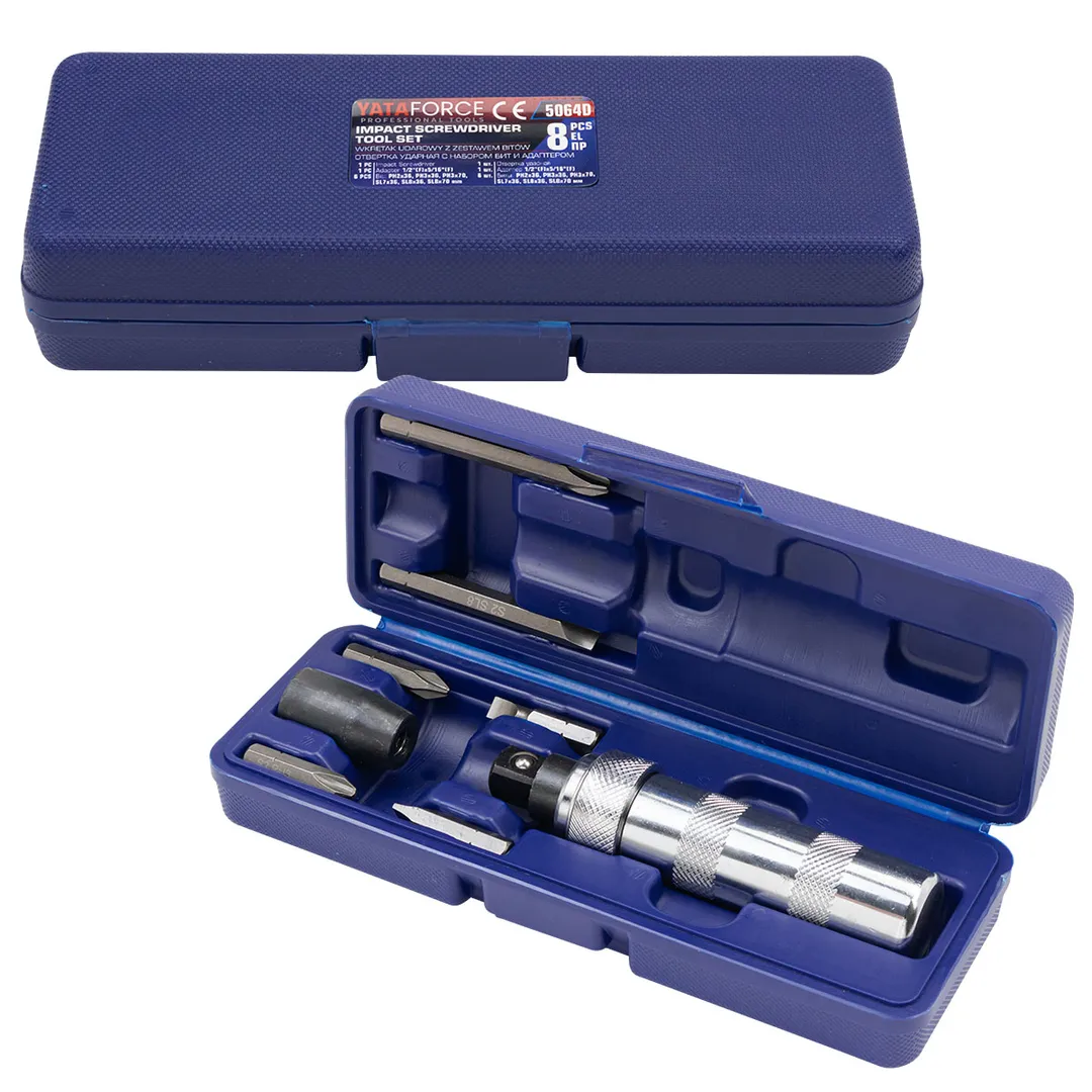 Отвертка ударная с набором бит PH, SL и адаптером 8 пр YATAFORCE YF-5064D