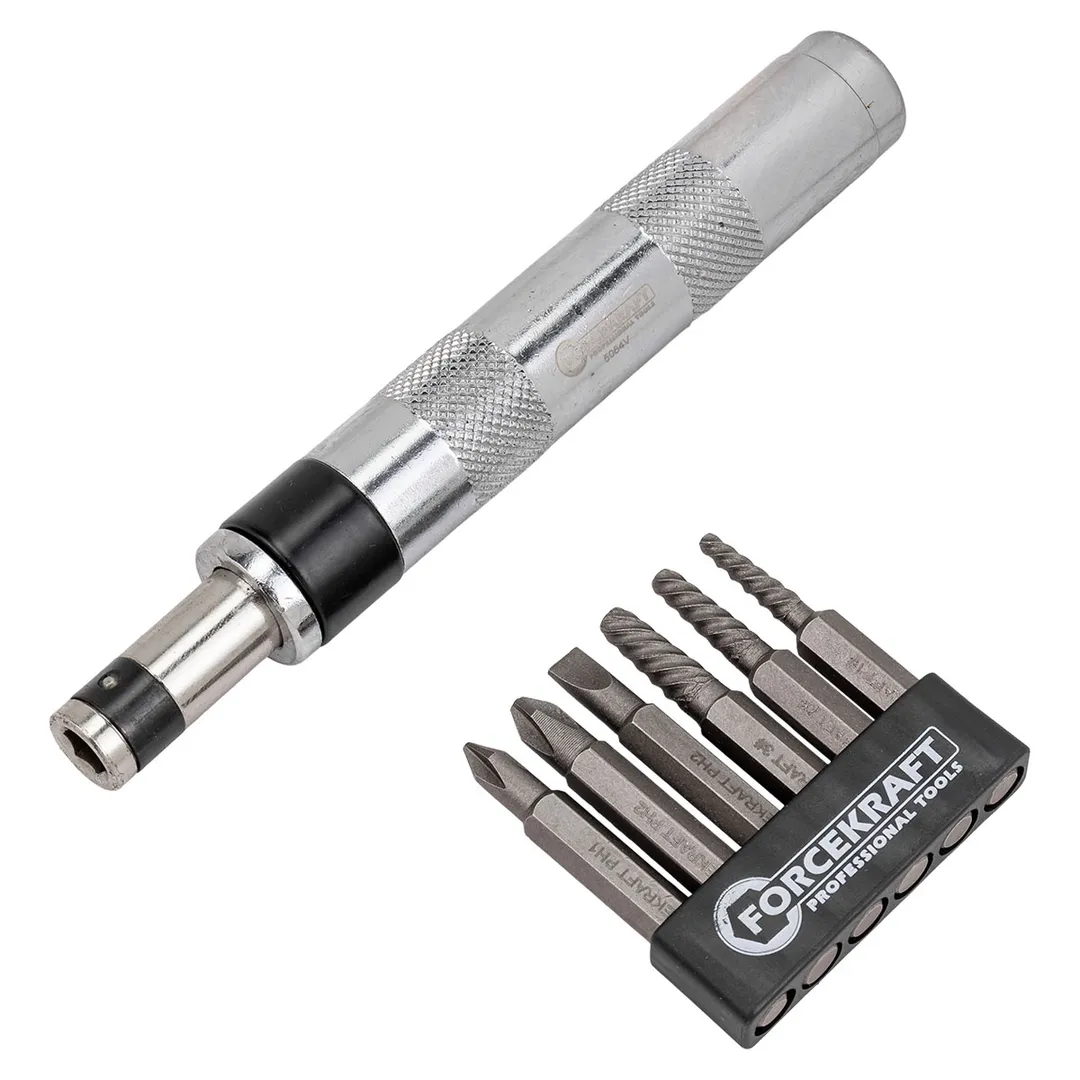 Ударно-поворотная отвертка с набором бит и экстракторами резьбы 7 пр ForceKraft FK-5064V