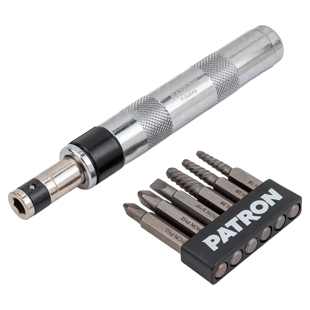 Ударно-поворотная отвертка с набором бит и экстракторами резьбы 7 пр PATRON P-5064V